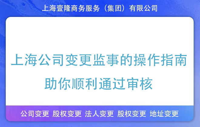 嚴格遵循流程、把控材料細節,是監事變更順利通過(guò)的核心。若您對材料合規性存疑,可提前咨詢(xún)相關(guān)部門(mén)或專(zhuān)業(yè)機構,確保變更一次性通過(guò)審核。上海壹隆可幫您全程代辦變更監事,無(wú)需本人到場(chǎng),不成功不收費,歡迎咨詢(xún)!